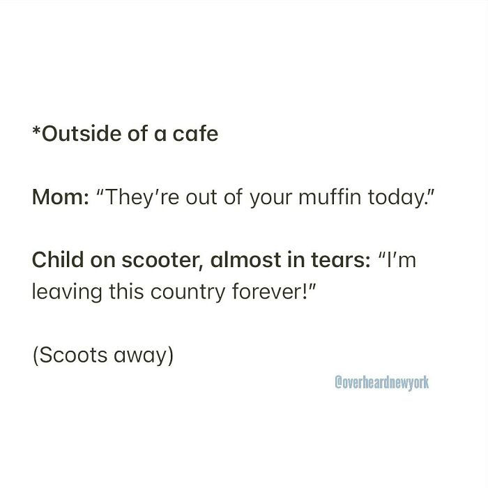 With 1.6M followers eager to scout the snippets of things people overheard in the streets of the Big Apple, you get a feeling this is a way to shed light on the locals and their lives. Scroll down, upvote your favorite overheard conversations, and be sure to check out our previous features on Overheard NY here and here.