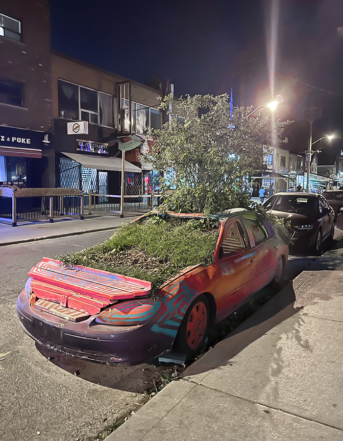 #29 I Found A Car In Toronto Overgrown With Plants, On A Busy Street Parked Beside Other Cars