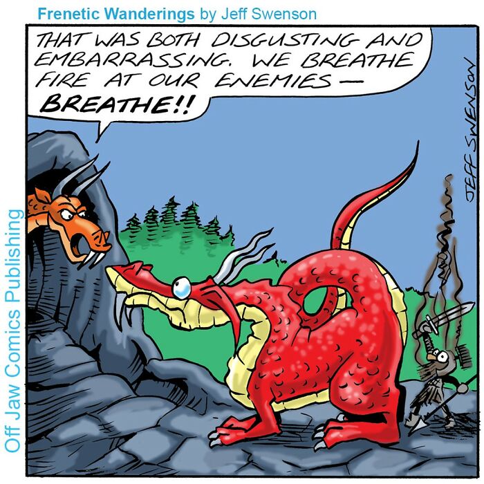 Jeff Swenson is another cartoonist making his first Bored Panda feature. Known for his peculiar sense of humor, he may find some new fans in our community. If you’re curious to learn more about the series ahead, we asked the artist himself about the common motifs featured in his comics. Jeff responded: “Recurring themes? Probably some stale gags here and there, so either I’m trying to make readers laugh or groan.”