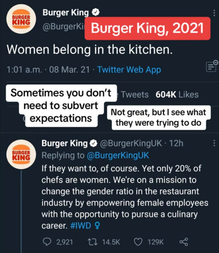 Burger King also tried to take the spotlight off themselves when they were being called out over an ad in which a woman is suggestively eating one of their sandwiches. They said the poster was created in Singapore and was intended to be used only in the Singapore market. As if that makes approving the poster an okay thing to do.