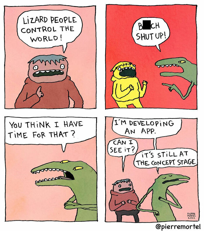Pierre Mortel is a French artist who humorously refers to himself as the “starving skeleton artist from rural France.” He’s known for his amusing and quirky comics featuring relatable life experiences and absurd situations and has captivated an audience of over 37 thousand followers on Instagram.