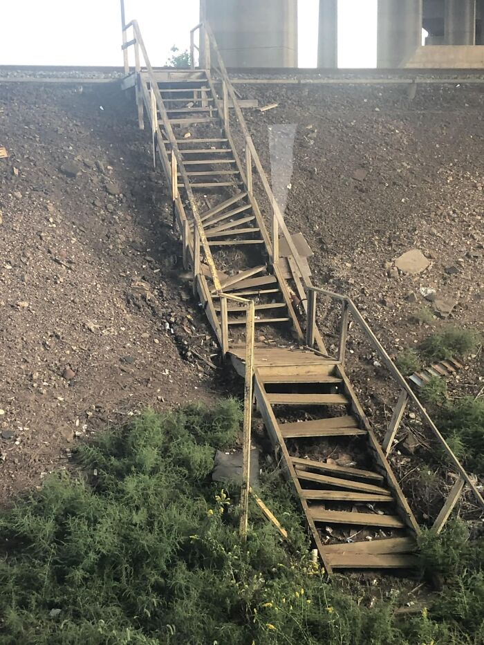 “We’ve encountered crumbling concrete city stairs, residences with all number of stair-related code violations, and piles of bricks or rotting wood being passed off as ‘stairs’,” he says.