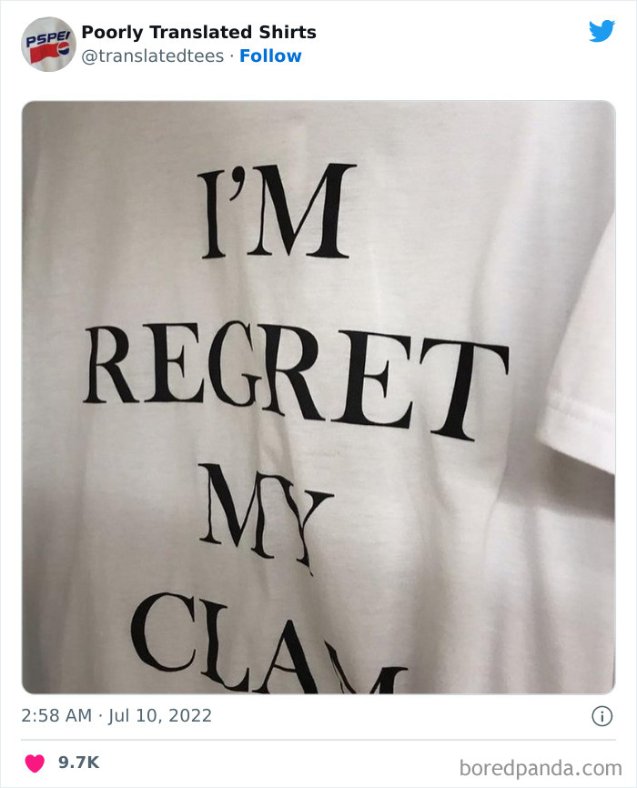 But what if the scribble on the t-shirt makes zero sense? Well, the chances are it ends up on this very entertaining and utterly hilarious Twitter page called “Poorly Translated Shirts.”
