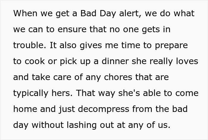 To try to minimize the damage that occurs during his wife’s bad days, one dad decided to start sending out warnings to his kids when their mom wasn’t feeling her best. But she was not impressed when she found out what was going on behind her back. Below, you’ll find the full story that this dad recently posted on Reddit, as well as some of the replies readers shared.