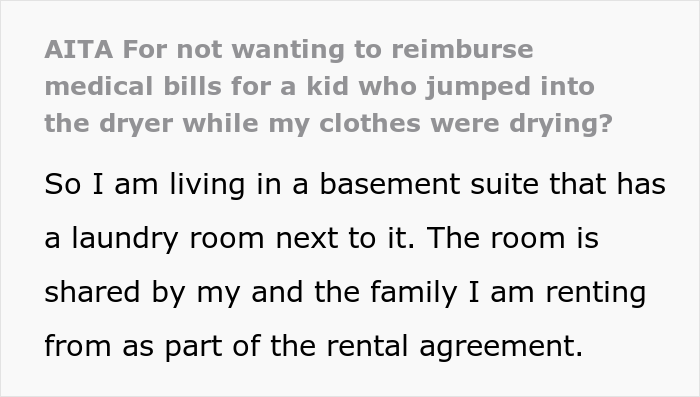 The post “Am I A Jerk For Not Wanting To Reimburse Medical Bills For A Kid Who Jumped Into The Dryer While My Clothes Were Drying?” first appeared on Bored Panda.