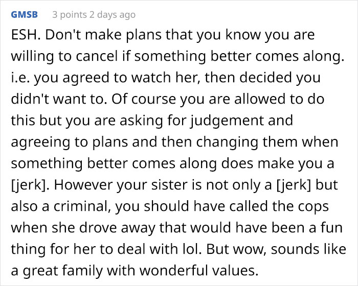 Suddenly, the author’s plans changed when her old college friends told her they were stopping by her town on the same day. “I gave my sister 5 days notice that I could no longer babysit on Friday,” the author said and added that “she didn’t respond to the text, but she read it, so I assumed it was OK.”