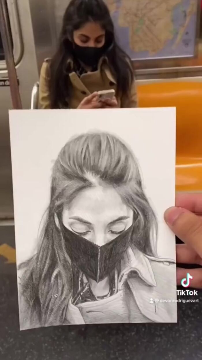 Devon Rodriguez, a New Yorker, connects with others in a simple and friendly manner by using his talent and free time. The artist is displaying his skills by drawing unsuspecting subway passengers in New York and then giving them the completed piece as a token of gratitude.