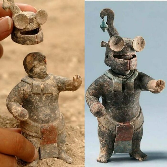 1,500-year-old Ceramic Maya Figurine with Removable Helmet, from El Perú-Waka’, Petén, Guatemala