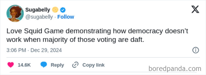 But the second season of Squid Game has been somewhat controversial. Some people love it (hi!), others can’t wait believe they’ll have to wait months for a follow-up (hey again!), while still others are too cynical to enjoy any of it. Our cinema-loving team at Bored Panda has collected some of the funniest and most relatable memes of people reacting to Squid Game Season 2 for you to enjoy. Scroll down to check out the very best ones!