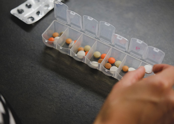 putting prescription pills in a daily reminder case ( M T W TH F S S)