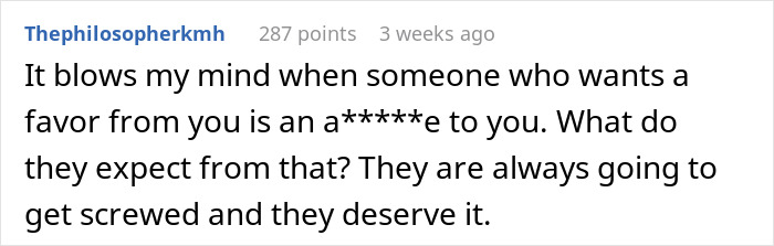 Does that make it okay to allow yourself to be treated like a doormat? Absolutely not. Should you leave the judging to divine beings and universal energies? Who knows. The discussion of these topics is never-ending, which makes them evermore so interesting to delve into. Besides, a little petty revenge that acts as a minor inconvenience can’t hurt all that much, can it? It certainly left OP and the readers of this story quite satisfied.