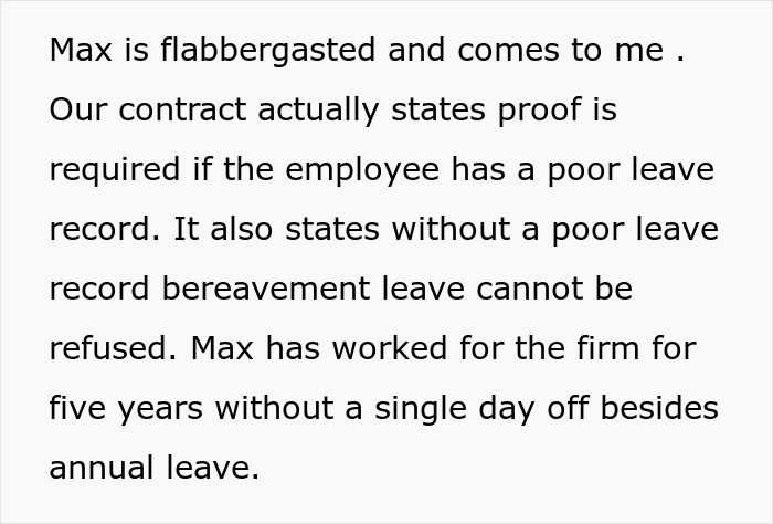 An employee came to the poster after not being granted bereavement days so he could go to the funeral of his grandmother