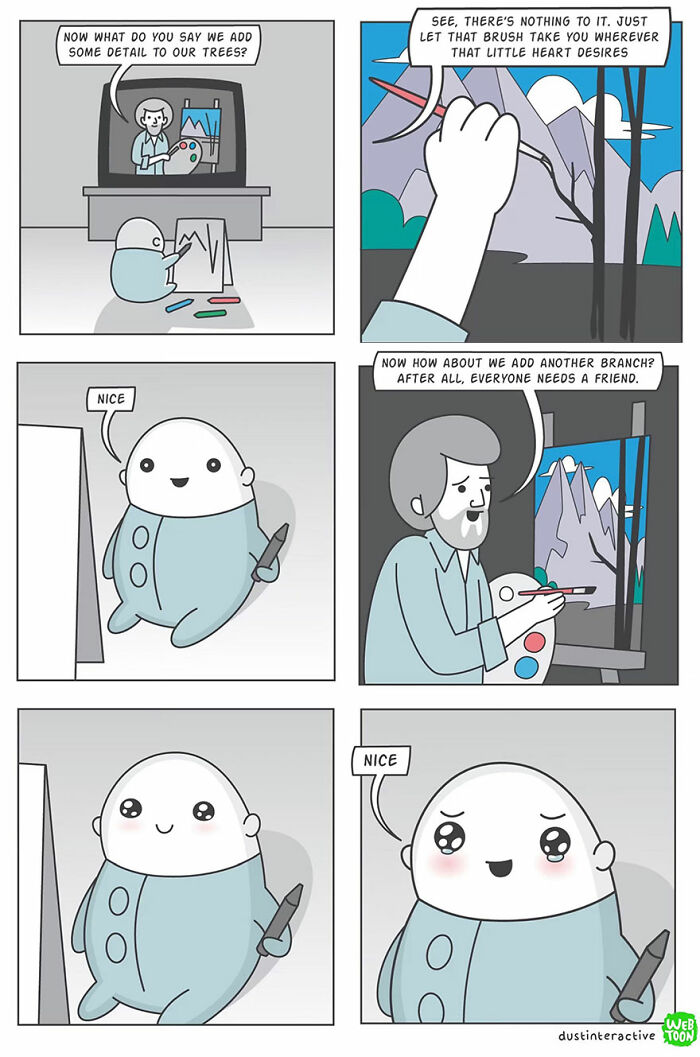 Next, we wanted to find out if Dustin could tell us more about specific influences or artists who have inspired his work. The illustrator shared with us: “My entry into the world of comics was inspired by Matthew Inman, the creator of The Oatmeal. Seeing his ability to tell captivating stories and make a substantial impact on the world fascinated me. He was also brilliant at marketing. His success in monetizing his work also influenced me, as he pioneered ways for comic artists to sustain themselves independently.”