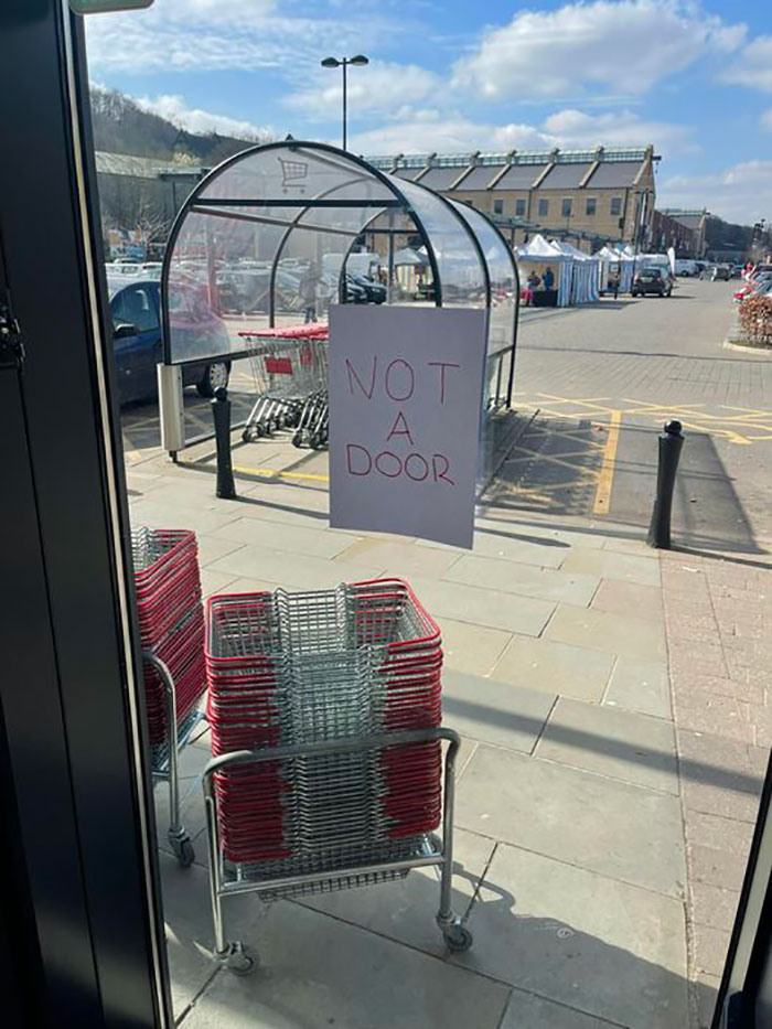 There’s got to be a couple of very interesting and painful stories behind the window with the sign that says ‘NOT A DOOR,’ as well as the warning not to stick your fingers in the fish and turtle tank. Some stores and companies really don’t put in enough effort when it comes to safety: some people actually do end up getting hurt, which leads to warnings and disclaimers to protect folks in the future.