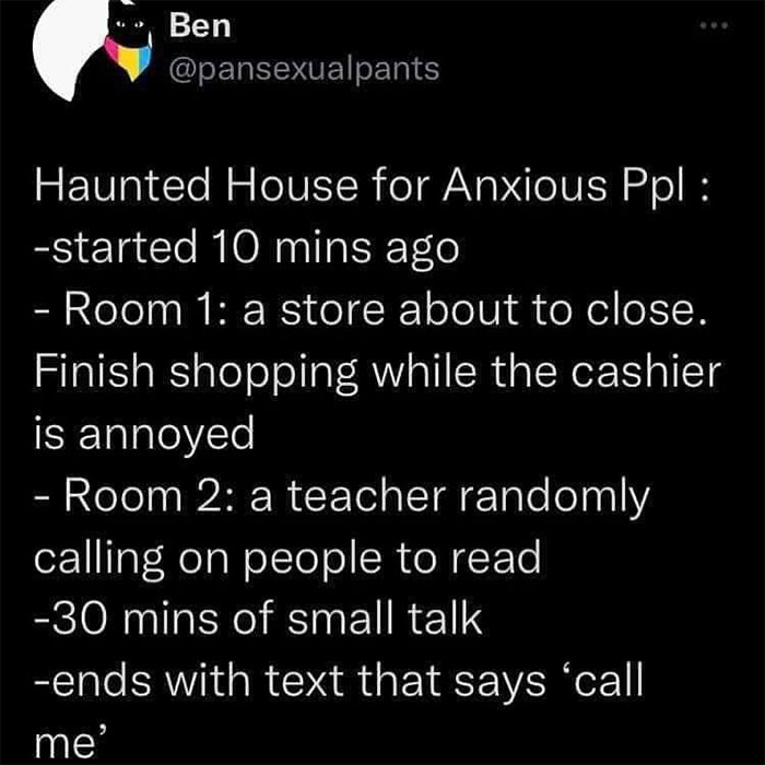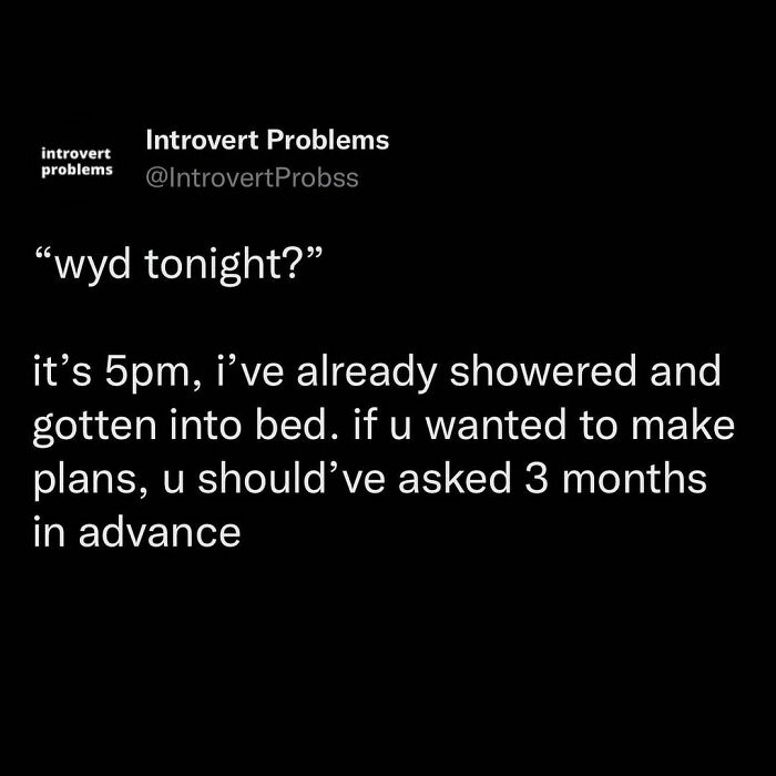 With the caption reading, “memes for the antisocial you”, it covers socializing-related situations one Tweet at a time. And it seems that over 210k followers can relate. Today, we’ve gathered some of their posts that best describe the less thrilling part of going out and interacting with people. If you’d like to familiarize yourself with their thoughts, wait no longer and scroll down to find the images below.