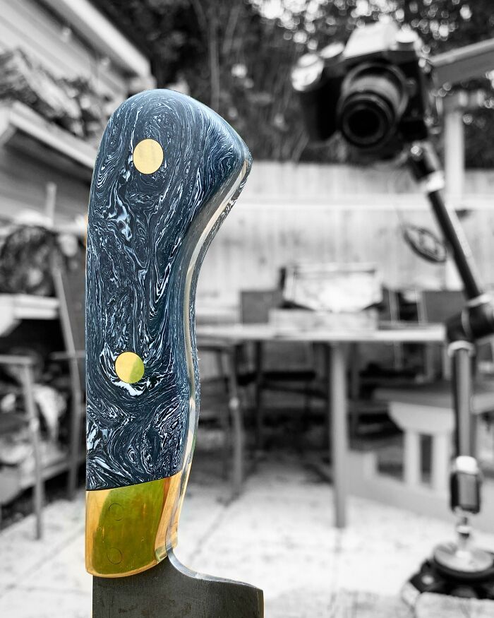 #104 Made Some Recycled Hdpe Plastic Scales For This High Carbon Steel Chef’s Knife. Love The Marbled Effect!
