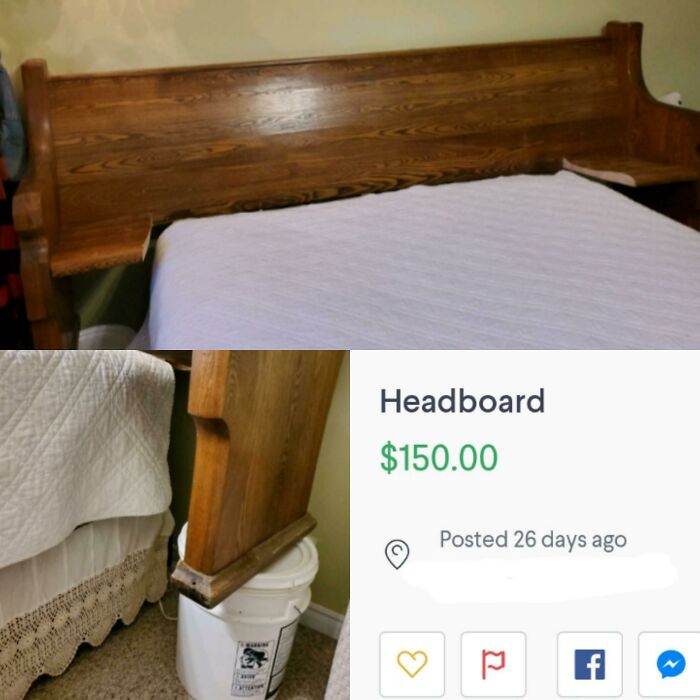 #27 Found On Kijiji. Church Pew Headboard Complete With Buckets For Only $150.00