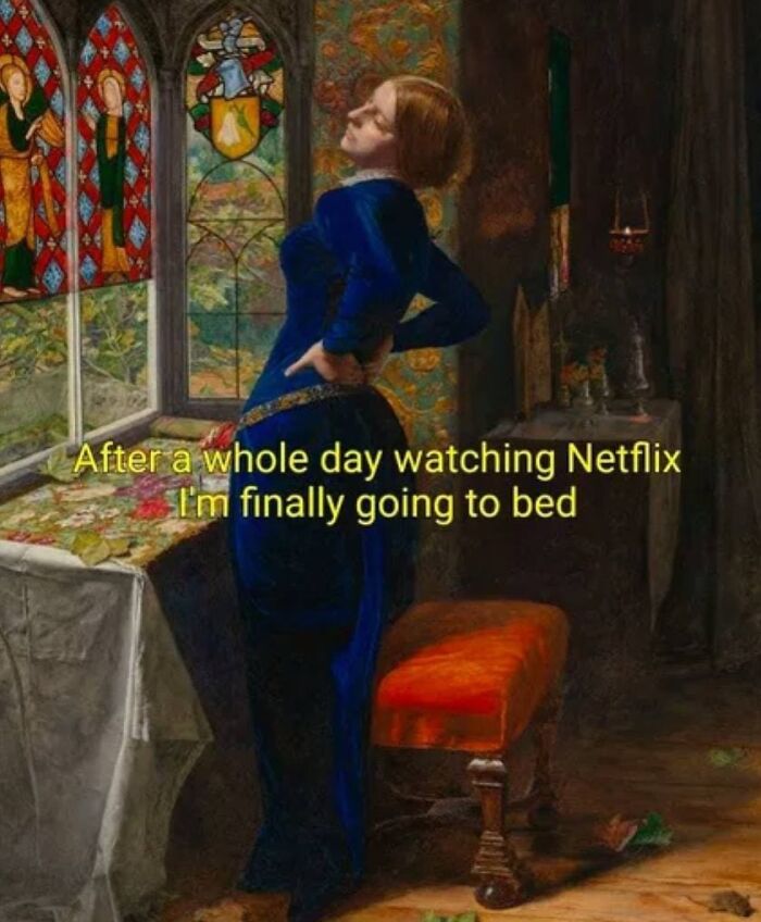 On paper, blending classical art elements with memes may not seem like a good fit. However, by touching on relatable topics like Netflix-binging, the right image, when combined with sarcastic text, can produce a hilarious outcome.