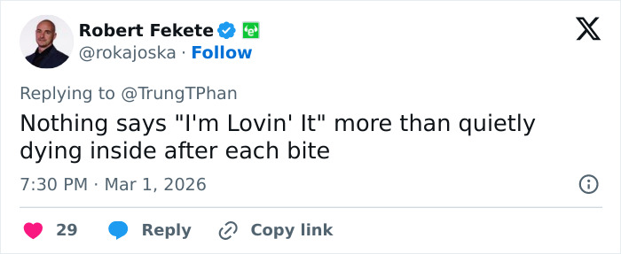 Critics noted he looked “scared to bite it” and “seemed like he was going to hurl,” prompting jokes that his “aura screams kale salad” and that he had never actually eaten McDonald’s before, despite being its CEO.
