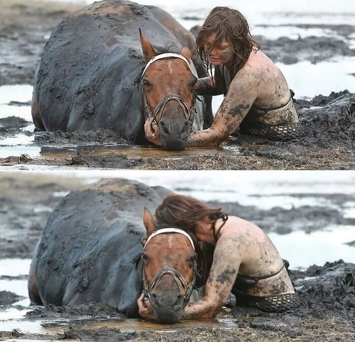 Through sheer grit and determination, she kept him alive until rescuers arrived and pulled him to safety.