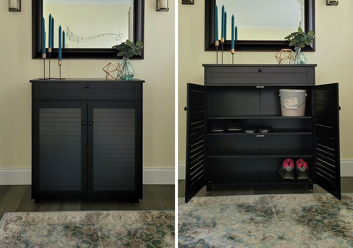 Review: “Love this item! For the price, you can’t go wrong. Item was packaged extremely well. I was able to put this piece together in just over an hour (much simpler than putting other pieces I’ve purchased). Like the fact that the doors close with magnets and holds 12 pairs of adult sized shoes. My foyer no longer looks like a dumping ground for shoes, and love that I can put my mail in the top drawer. No more clutter. Definitely recommend this cabinet.” – Pamela Besu