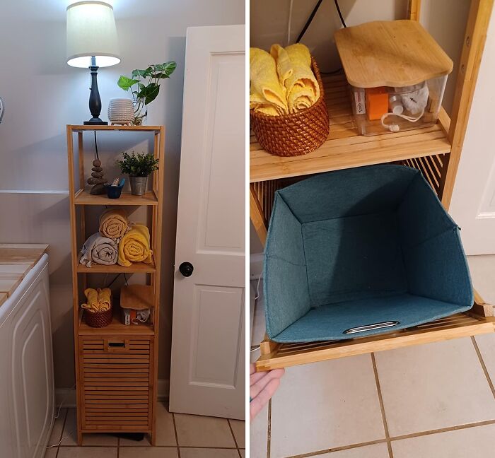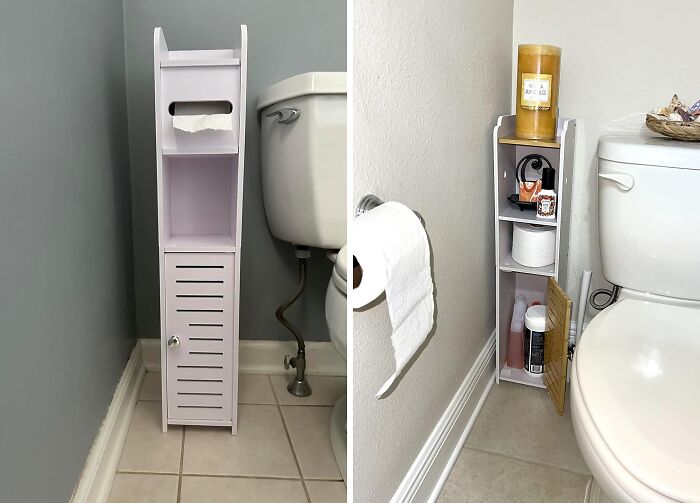 Review: “Needed something to fill that awkward space in between the toilet and sink and I found this! It’s perfect and holds enough miscellaneous items needed in a bathroom.” – Hannah