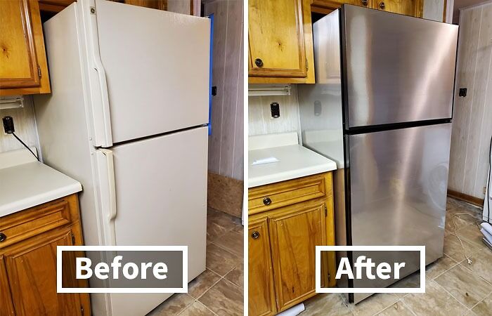 #10 Cover Your Fridge In Stainless Steel Wallpaper