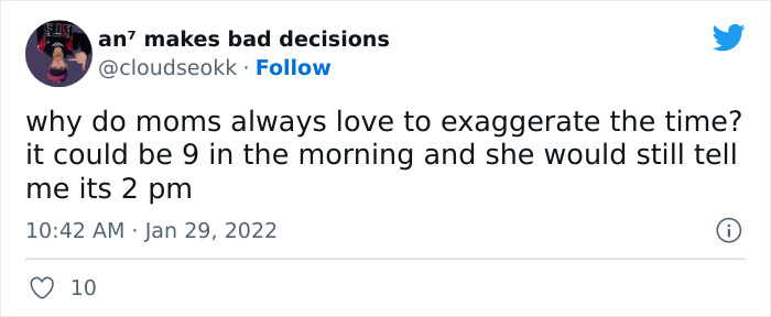 Which of these tweets describe your mother or a mom you know? Are there any other things that are universal for all moms? Share your experiences and your thoughts in the comments!