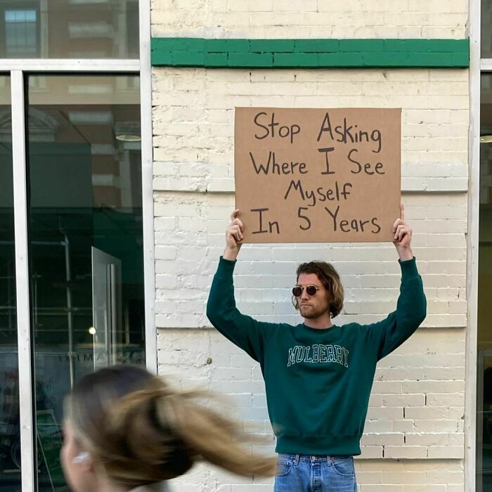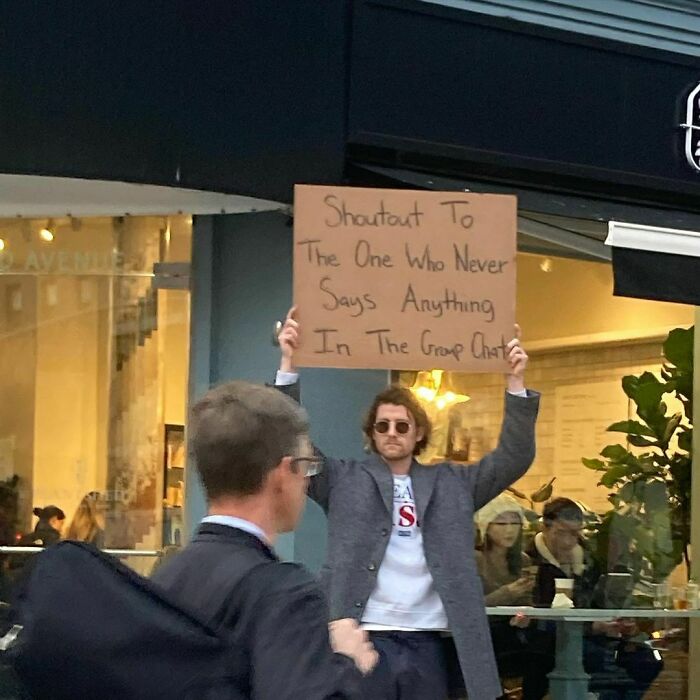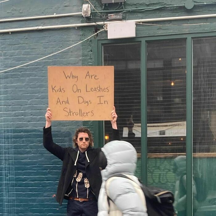 These and many more topics have been touched on by the renowned ‘Dude With Sign’. You’ve likely seen a picture of him holding a cardboard sheet with a witty or serious, in most cases very relatable statement. If you haven’t, you’re about to familiarize yourself with one of the voices of our generation. If you have, you know you’re in for a treat. Sit back, relax, and browse through the things that have been bugging him lately, which have likely popped into your head at some point, too. If you want the list to keep going, you can find more of his statements here, here, or here.