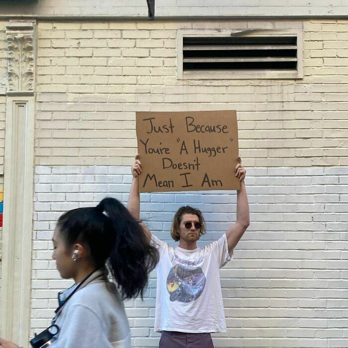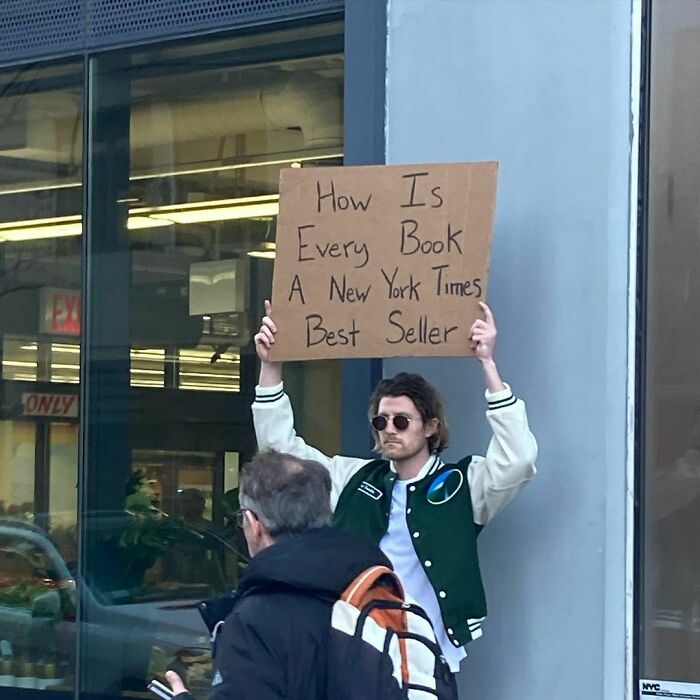 His one-man protests cover everything from the latest trends in TV or music (stopping yourself from singing “I can buy myself flowers” is not an easy task to do), to perfectly capturing awkward social situations or even highlighting political matters. Seth continuously documents them—while wearing his signature shades, of course—and uploads the pictures online for the world to see.