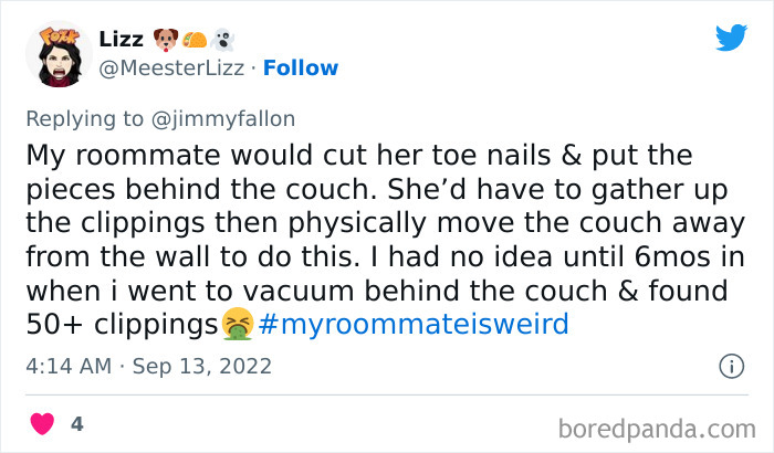 Excited by Fallon’s challenge, Twitter users from pretty much all corners of the globe revealed the most hilarious things their roommates did and the utmost bizarre experiences they had while living with someone else.