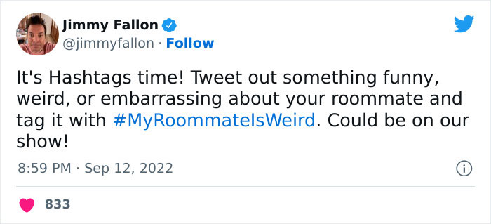 It’s Hashtags time, Pandas! Jimmy Fallon, the charismatic host of the legendary The Tonight Show, invited his fans to share the funniest, weirdest, and most embarrassing stories about their roommates on Twitter. And, wow, did they deliver!