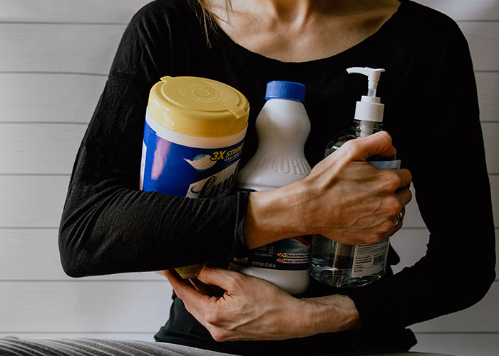 Mixing cleaning ingredients.