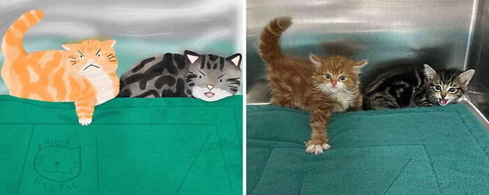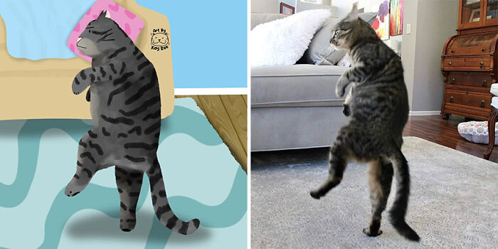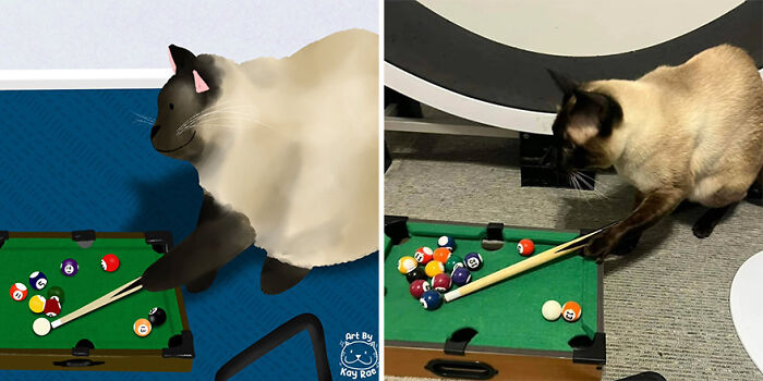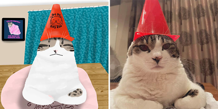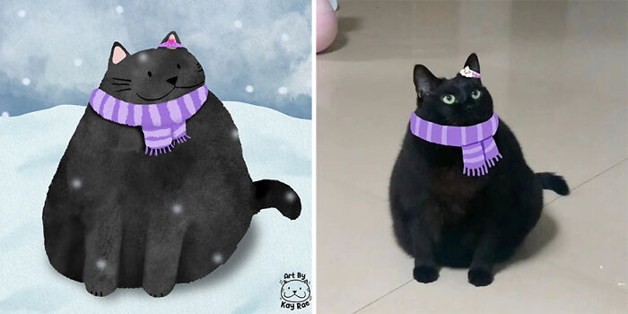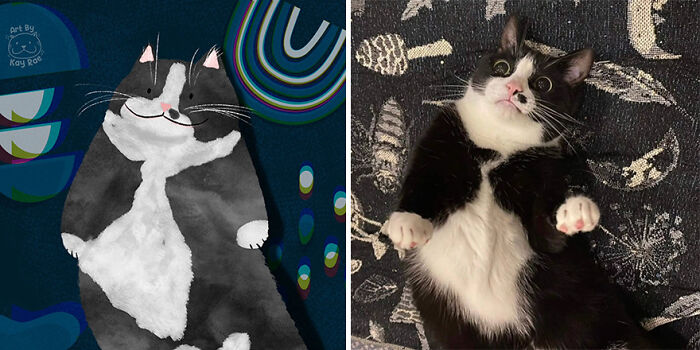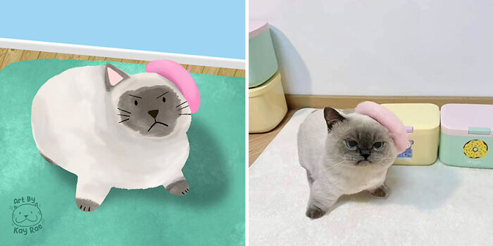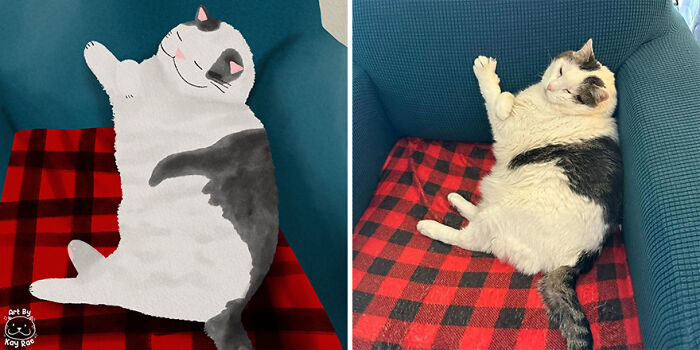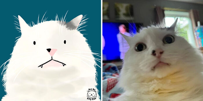 Animals are the ultimate muses for many artists, and Kelsey, the artist behind Art By Kay Rae, is no exception. She loves illustrating funny animal moments—especially cat photos found on the internet—and turning them into humorous drawings.