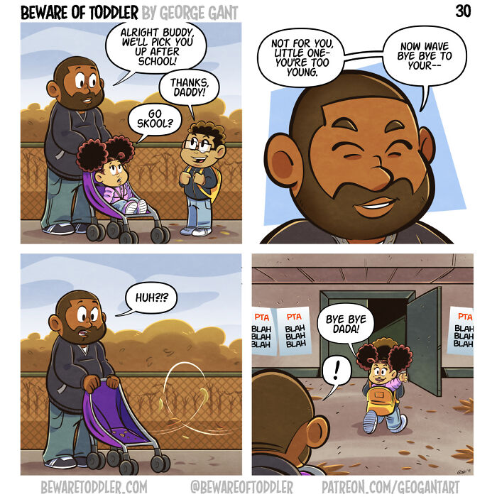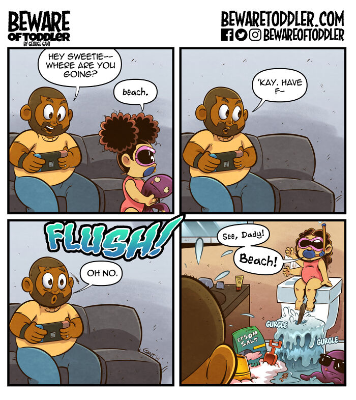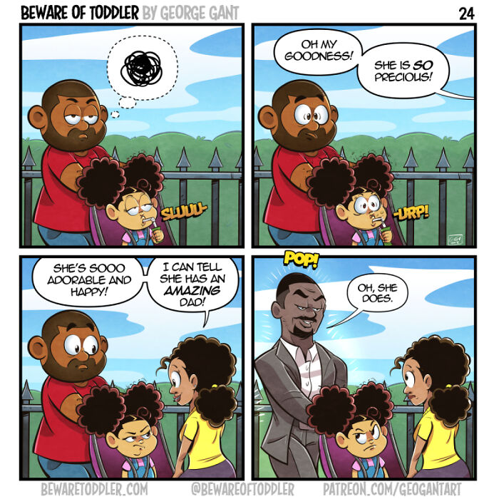 One of the things I’d like readers to take away from Beware of Toddler is that there isn’t a lot of media with a focus on dads–especially stay-at-home dads. This can be exacerbated when it comes to marginalized dads but ultimately, I think all fathers can relate. The fact of the matter is we exist, and I hope my comic is successful in bringing a bit of visibility to this fact.
