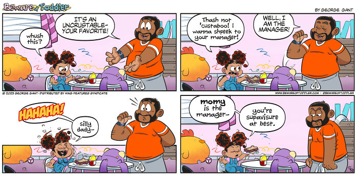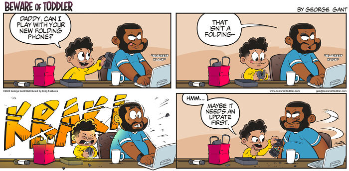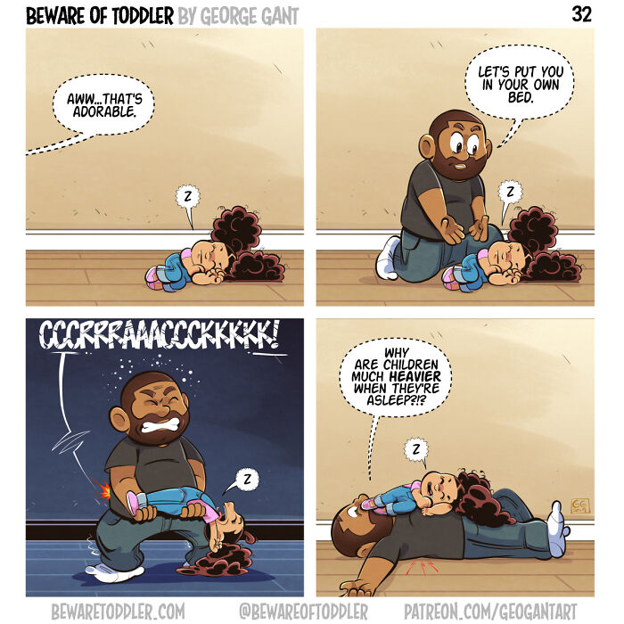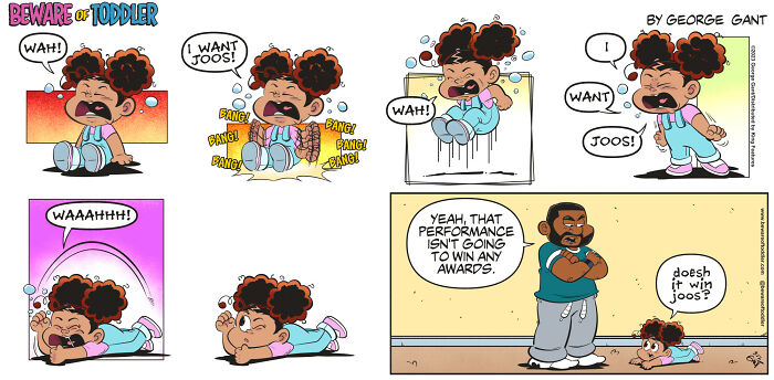 Hi! My name is George, a Chicago-based cartoonist and creator. Since 2019, I’ve been making a comic strip loosely based on my experiences as a stay-at-home parent to a toddler. Since then, my comics have won several awards, been nominated for even more, self-published a book, and even ended up in newspapers. Either way, enjoy them! (Unless you can relate to some of these—in that case, I’m sorry.)