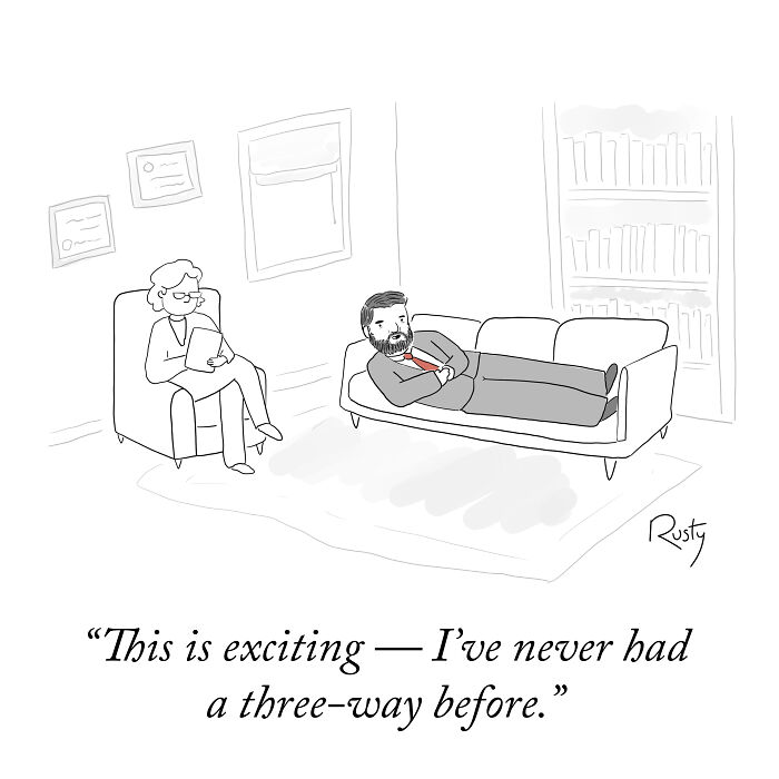 If you’ve ever found yourself laughing at the little absurdities of everyday life, you might enjoy the cartoons by Rusty Epstein, the creator of the webcomic Bummer Party, which we’ve featured in the past. Today, however, we’d like to focus on the artist’s parallel series, simply titled Rusty Cartoons.
