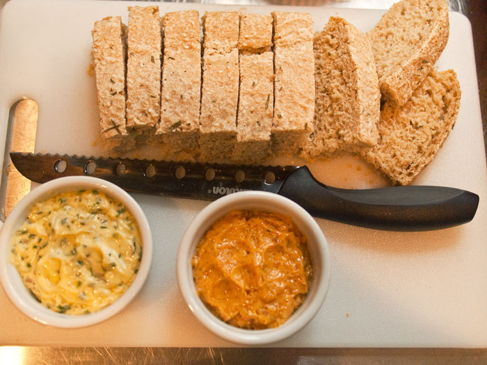 My office used to do “goodie days” and would pass around a sign up sheet for what you were going to bring so that we wouldn’t have too much of one type of thing. One of those days, I put on the sheet that I was bringing “bread and butter”. The night before, I got my bread machine going and baked two loaves of different, crusty herb breads. At the office, I sliced them up, put them on a warming tray and had butter on the side. It was gone in a short time, and people were commenting, “I thought you were joking, but that turned out good.”