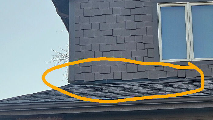 That’s flashing, not siding. Tuck it back in, under the shingles and nail it into the wall with roofing nails 1-1/4″ long. Put a blob of 100% silicon on the nail heads. Don’t fall off the roof.