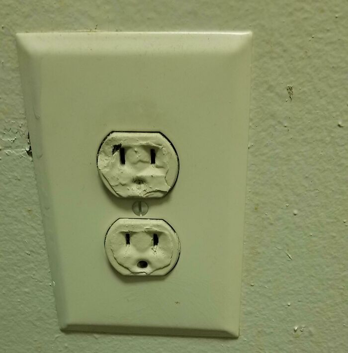 #14 Multiple Outlets In New Apartment Caked With Paint Like This One. Any Tips On How To Get This Off Safely And Clear Out The Grounding Prong Holes Too?