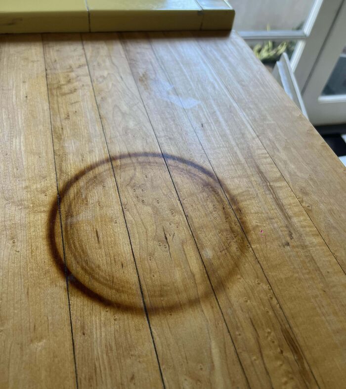 #24 GF Was Cooking Her Dog Food And Left The Hot Skillet On My Counter/Cutting Board. We Are Renting… Anyway To Fix This?