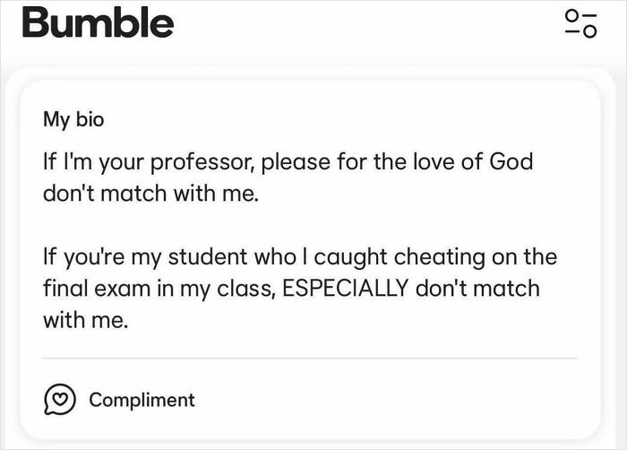 Technology promised to solve our problems, but it seems to make a lot of them worse. Take dating. How cool it was that we could “meet” and flirt with five, twelve, thirty-seven, even a hundred people on the internet without having to step our foot outside, we thought—for maybe an evening or two. But ask anyone who is actively swiping, and they’ll tell you it’s not that simple. The subreddit r/Bumble is dedicated to one of these apps, and it’s full of screenshots its users took of all the bizarre bios and painfully dry conversations they go through on a regular basis. These pictures reveal what online dating really looks like behind the filters.