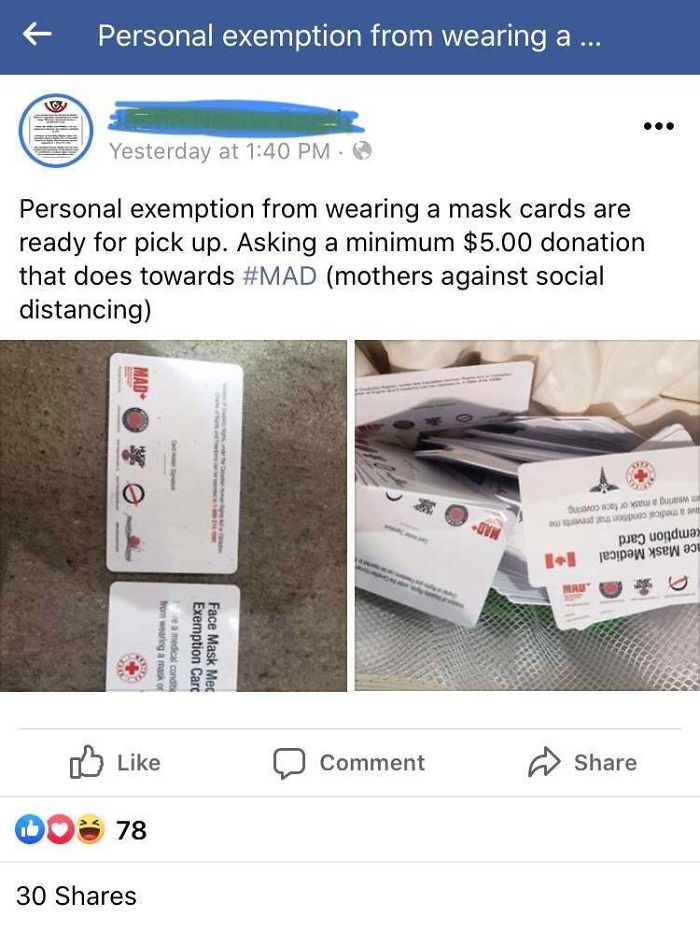 #21 This Guy Selling Mask Exemption Cards On Facebook