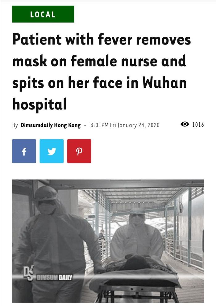 #25 Patient With Fever Removes Mask On Female Nurse And Spits On Her Face In Wuhan, Saying ‘I Don’t Want To Live Anymore And You Guys Should Not Live Too!’