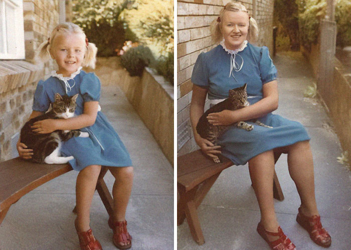All in all, being nostalgic can be surprisingly beneficial for us. These recreations of photos from the past let people step back into cherished times, even if just for a little while.
