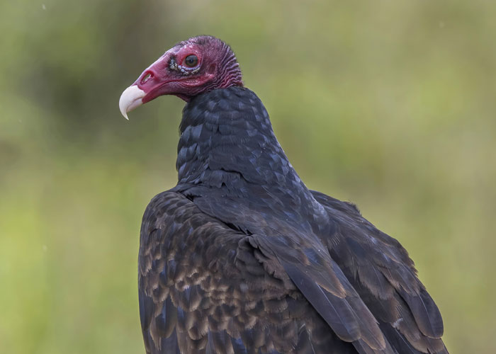 Turkey vultures bury themselves in carrion. Their heads are bald so they can slide in there more effectively. They projectile vomit gastric juices as strong as battery acid up to 10 feet to deter predators.
