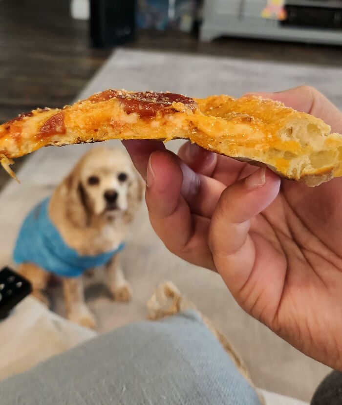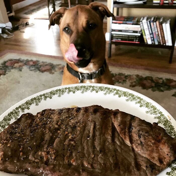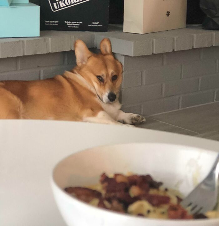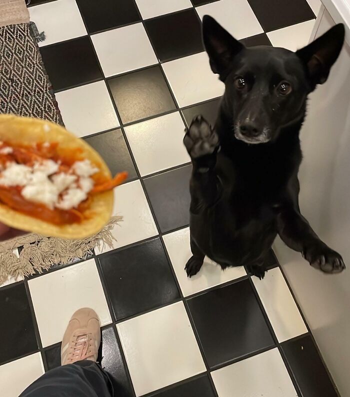 One digital community posts pics of pets looking lovingly at their human’s food in the hopes of getting a scrap and, with 27K members, we’d say the theme is pretty popular. So, without further ado, here’s a collection of our favorites.