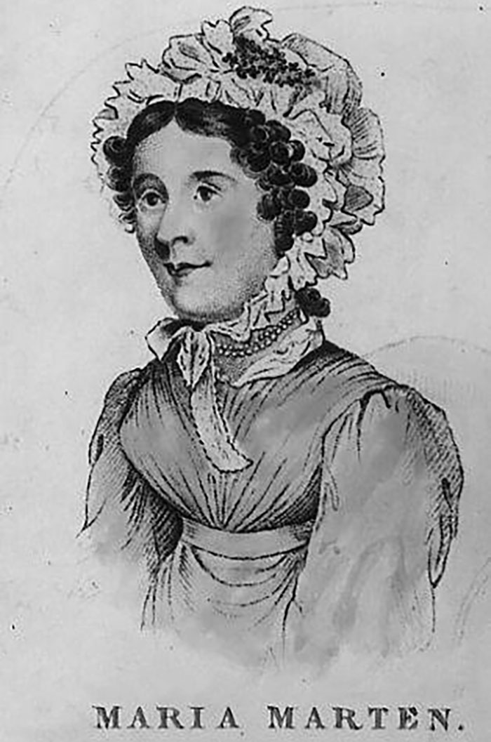 The Red Barn Murder was an 1827 murder in Polstead, Suffolk, England. A young woman, Maria Marten, was shot dead by her lover William Corder at the Red Barn, a local landmark. The two had arranged to meet before eloping to Ipswich. Corder sent letters to Marten’s family claiming that she was well, but after her stepmother spoke of having dreamed that Maria had been murdered, her body was discovered in the barn the next year.