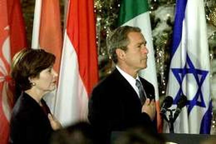 “Anti-Zionist” (wink, wink) websites are fond of this picture showing former President Bush pledging allegiance to the Israeli flag.