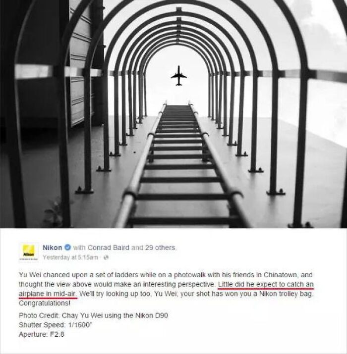 Before, Nikon held a photography competition, and finally, they decided to award the prize to a contestant named Chay Yu Wei, because he “accidentally caught an airplane” in the process of shooting, which made the whole picture very special.